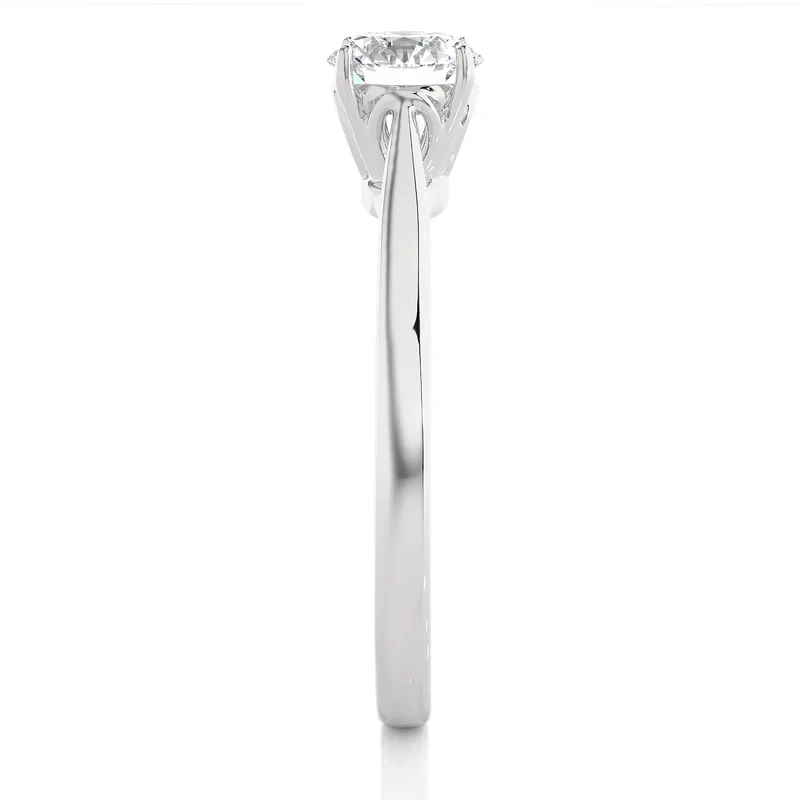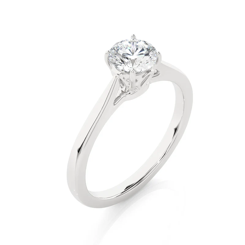 The 0.75 carat round moissanite in white gold is stunning and brilliant. The classic four-prong setting really enhances the stone's shine, and the craftsmanship on the white gold band is excellent.