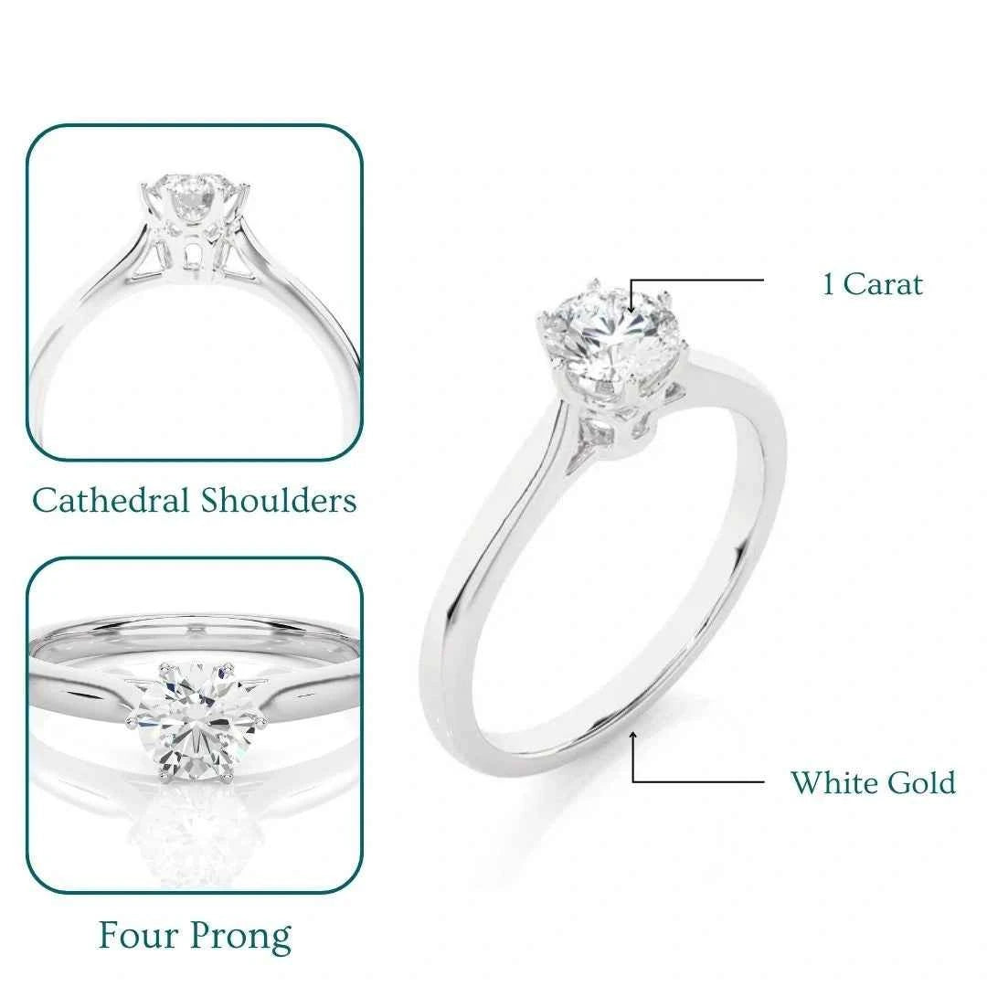 1 Carat Round Moissanite Solitaire Engagement Ring In White Gold