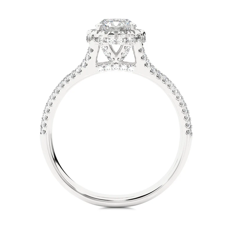 Make It Forever by Getting This Stunning 1.50 Carat Split Shank Halo Moissanite Engagement Ring. This Ring Is Something that She Was Looking for As Its Features Are the Most Attractive, Making People Fall for It!