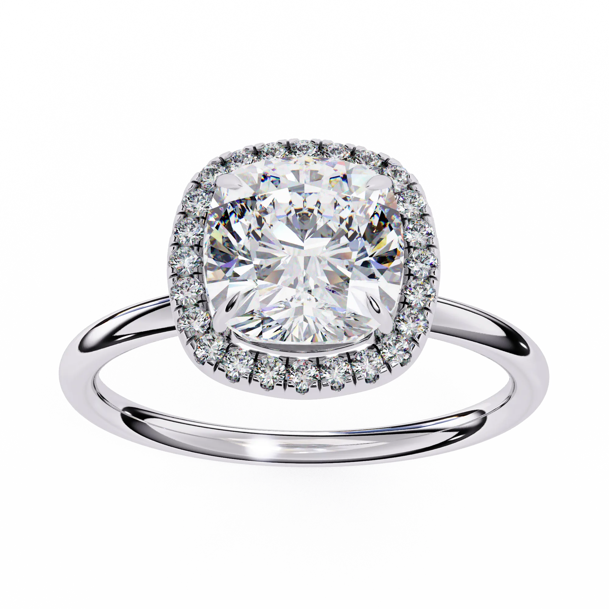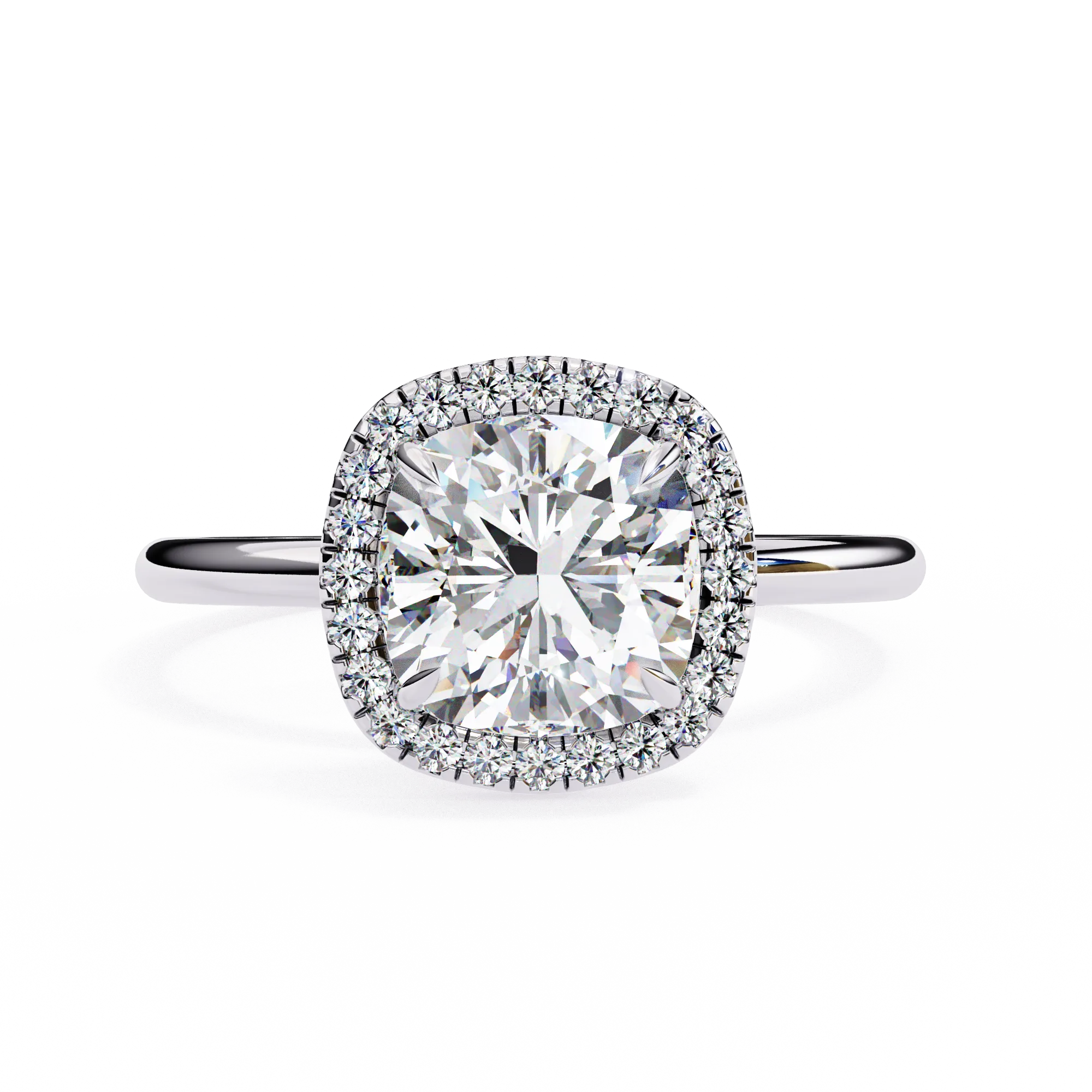 2 Carat Cusion Cut Halo Moissanite Engagement Ring In Silver