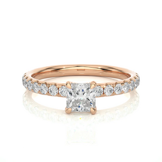 1.50 Ct Princess Cut Moissanite Engagement Ring with Accents in Rose Gold