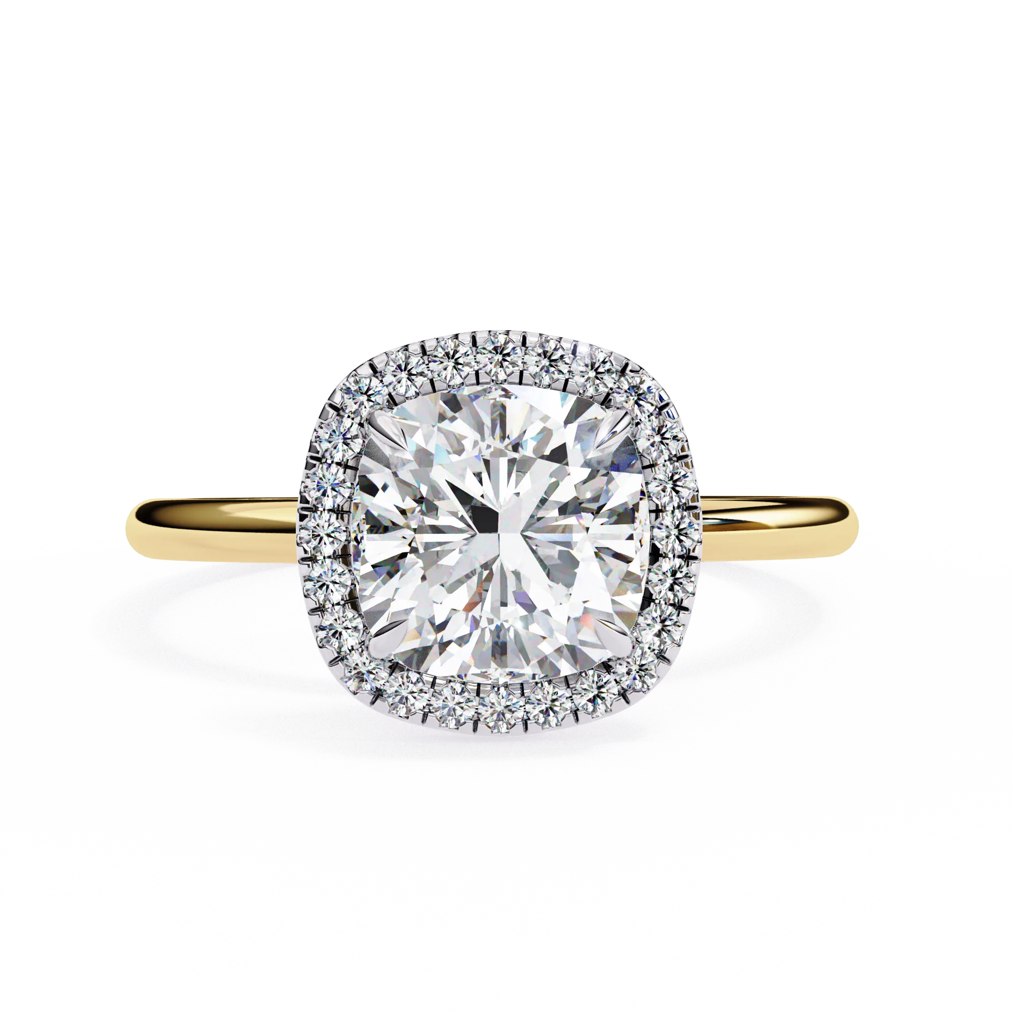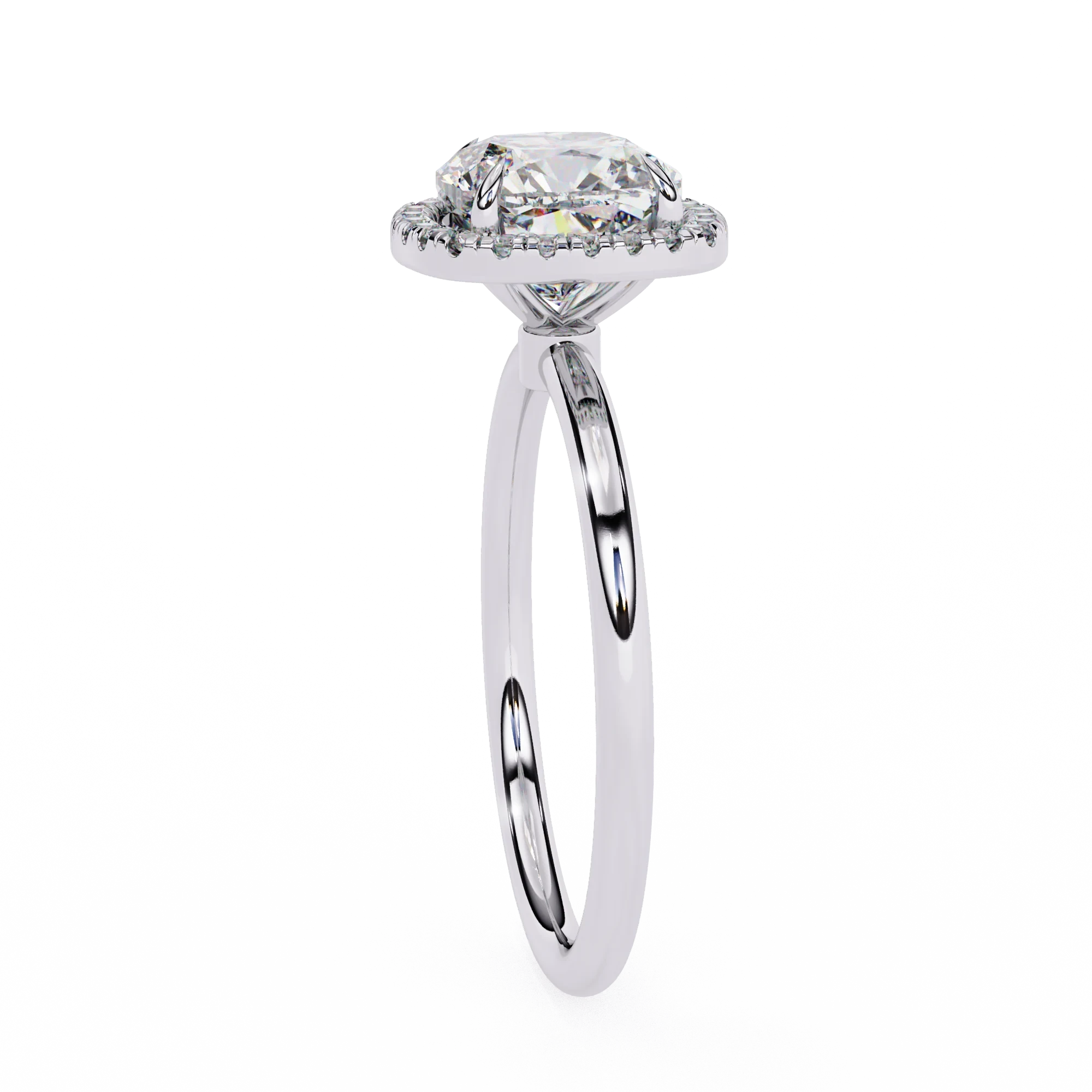 Bague de fiançailles halo en or blanc avec diamant taille coussin de 2 carats