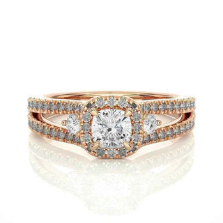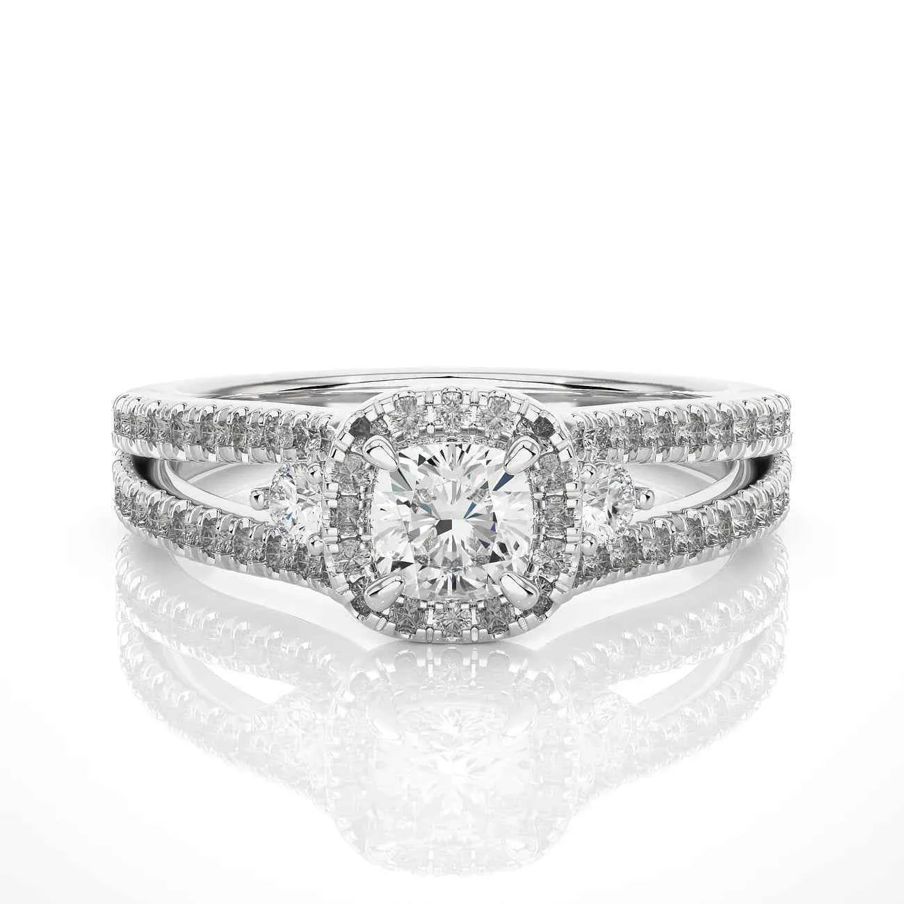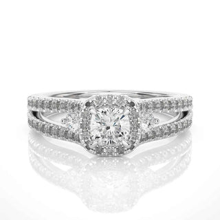 Bague halo en or blanc avec trois pierres en moissanite taille coussin de 2 ct