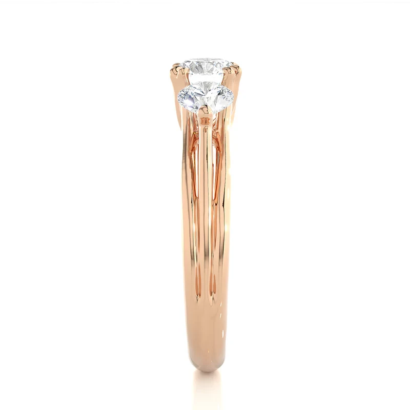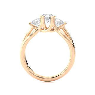 Bague en or rose avec moissanite taille ronde de 2 carats et 3 pierres
