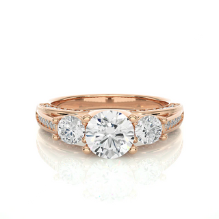 2 Carat Moissanite Three Stone Engagement Ring With Accents in Rose Gold