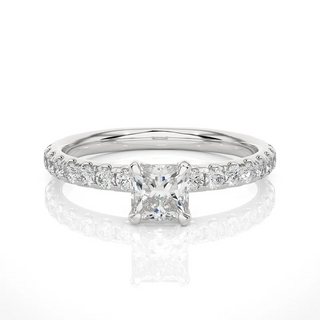1.50 Ct Princess Cut Moissanite Engagement Ring with Accents in Silver