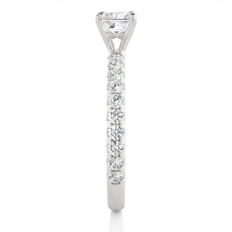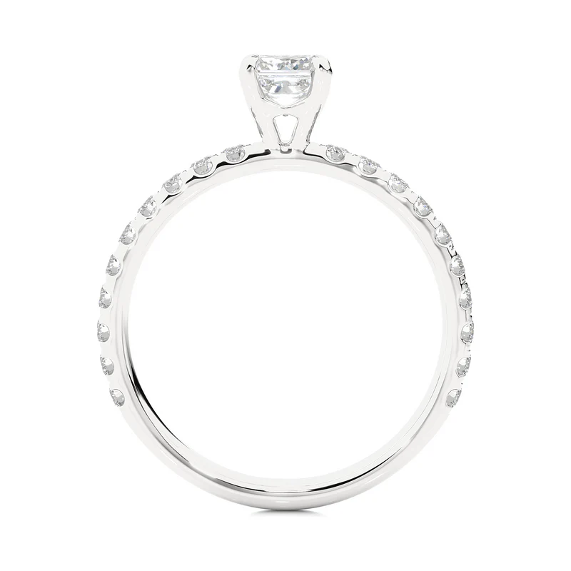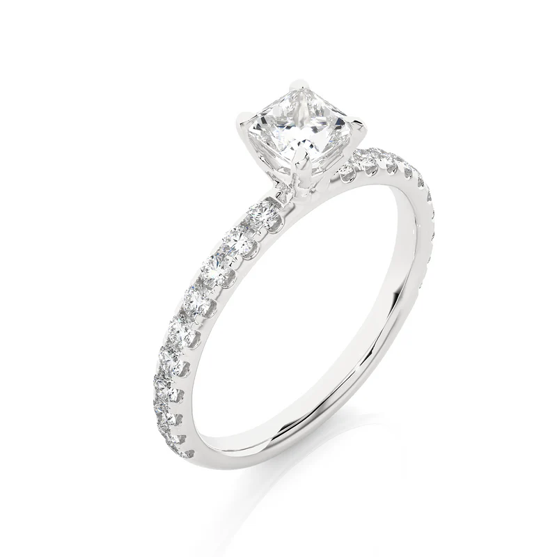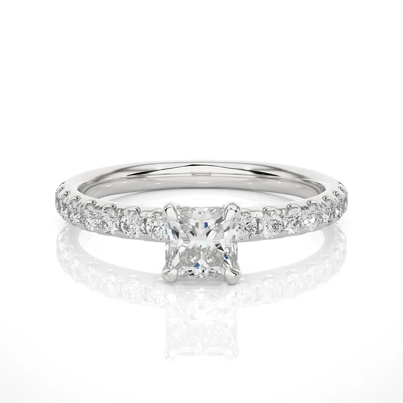 Shop this impressive 1.5 Ct Moissanite Princess Cut Engagement Ring, as the side accents placed in the shanks of the ring is showing the elegant beauty in white gold metal. Get this ring from loose Moissanite and get amazing deals on it!