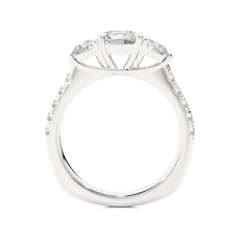 2 Carat Round Moissanite Engagement Three Stone Ring In White Gold