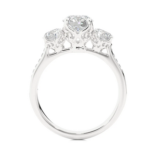 Shop for 2 Carat Three Stone with Accent Moissanite Engagement Ring in White Gold and make her shine with the glam of moissanite stone. Three stone always makes the perfect choice to be selected for an engagement ring. shop now and get it at the most reasonable price.